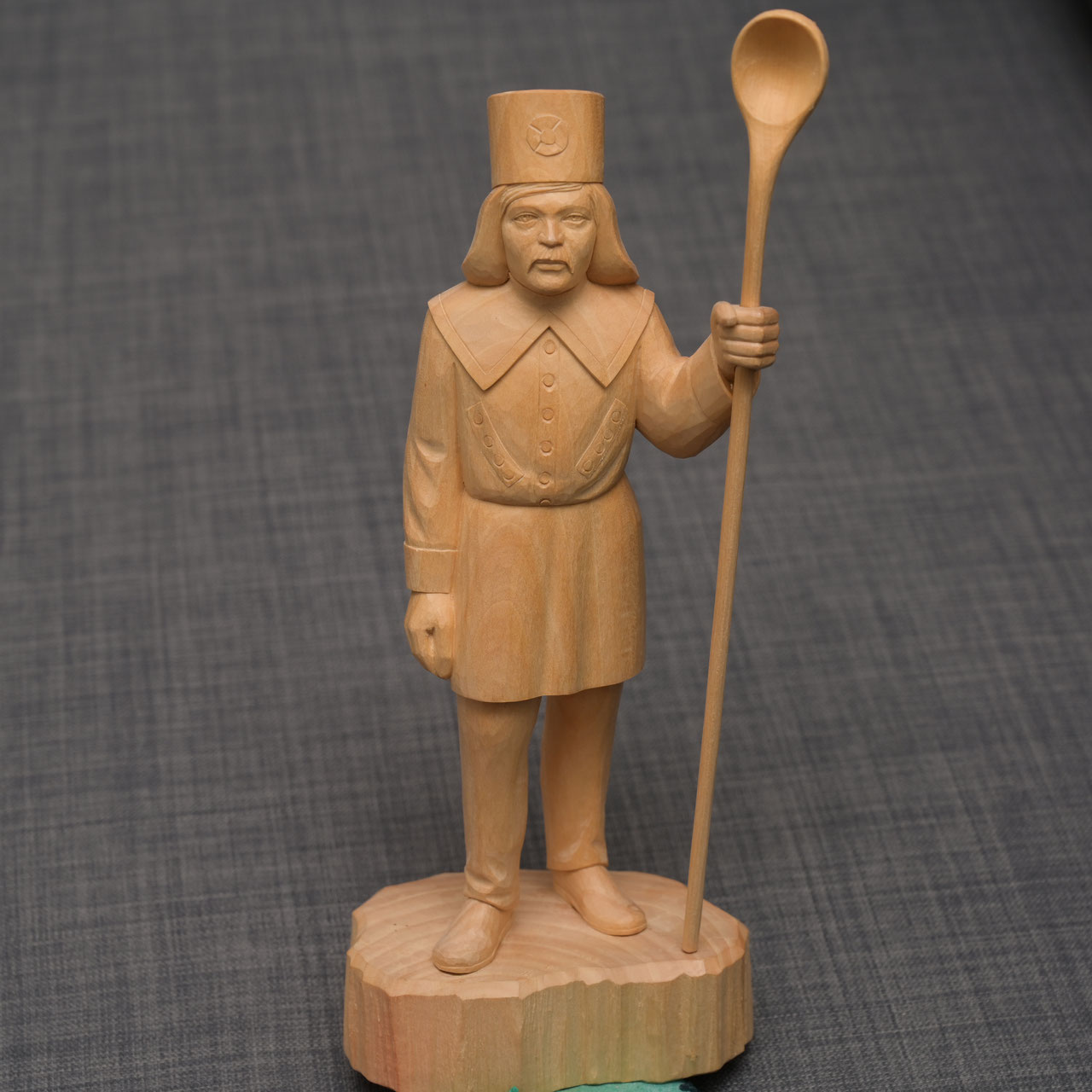 Die Figur ist hier in diesem Fall schon gewachst mit Bienenwachsbalsam. Wenn Sie also lieber eine farbige Figur davon wollen gibt es auch noch eine bereits angemalte Figur. Die Figur (der Körper) ohne Hut und Sockel ist 25 cm groß!