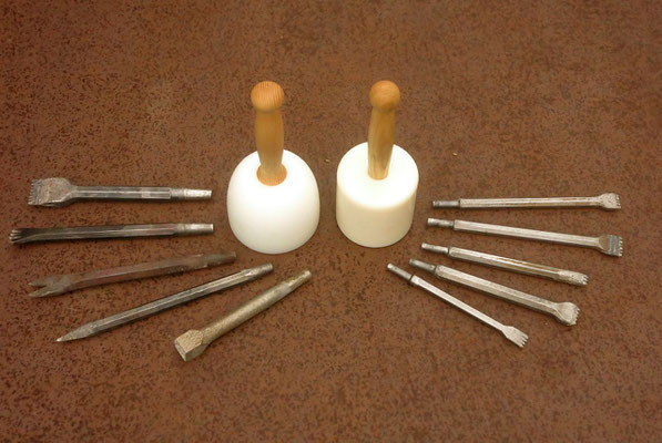 Die Klüpfel werden handgefertigt und bestehen aus abriebfestem Nylon-Material. Das Nylon hat einen ganz eigenen Schlag und ist geeignet für Weichgestein bis zu einer Moschen Ritzhärte auf der Skala im Wert 3.