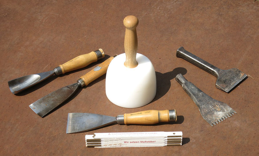 Nach meiner Erfahrung sollte so ein Klüpfel mindestens 450g wiegen, besser ist ein wenig schwerer, dass man auch mal etwas schwerere Stemmarbeiten an einem Relief in Eiche ausführen kann. Seine Stärke hat dieser Klüpfel bei Reliefarbeiten in hartem Holz, wo man damit wundervoll genau hauen kann und doch eine kernige Energie in dem Schlag verspürt. Von mir für Sie handgefertigt und empfohlen.